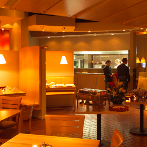 The previous restaurant in this space was completely demolished to make way for the new space, which includes concrete countertops, maple panels, extensive low voltage lighting, a floating millwork ceiling and built-in custom booths.
